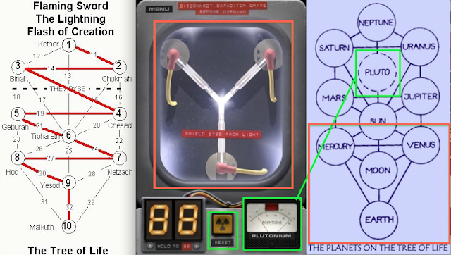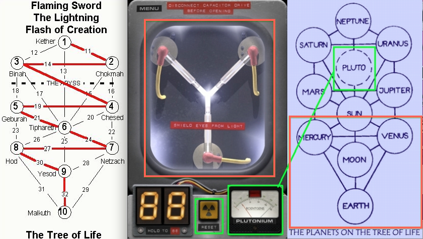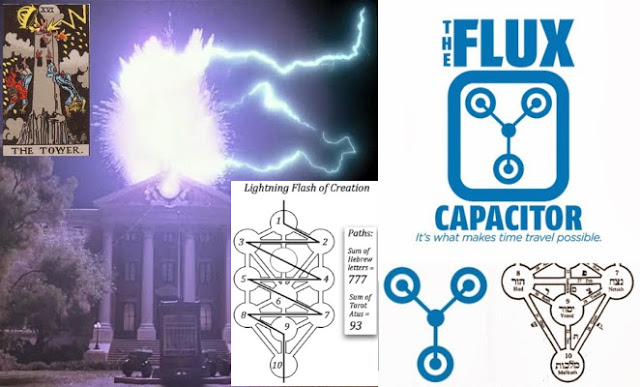 Back To The '911 Struck (Twin) Tower(s)' Future...Flux capacitor is a rendering (of part) of the (zig-zagging lightning struck, 777) tree of life, the bottom 4 spheres.