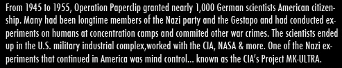 Paperclip...Nazis escaping to the US, at the end of the war.