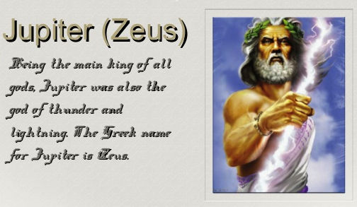 Juno, Jupiter/Zeus (lightning), Pluto-nium and Reset. Jupiter/Lucifer aka the 'light' bearer.