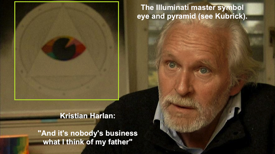 Oh look, one of Veit 'Nazi' Harlan's descendants (his son) acting as an apologist and in front of Kubrick's oft used 'Illuminati master symbol', the eye and pyramid! (from 'In the shadow of Jew Suss'). Spielberg's 'Swindler's Mist' would conveniently leave out the deal that saw Kastner (Schindler's Zionist boss), sell-out hundreds of thousands of (non Zionist) Jews to Nazi Eichmann.