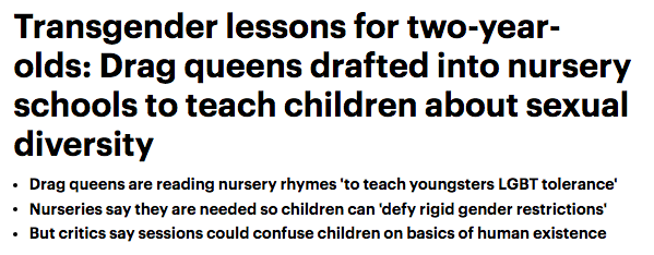 "Drag stories in UK nursery schools" - imported from the centre of JEW sickness, the US of Gay.