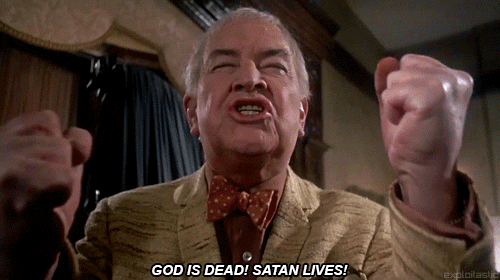 Now, what sort of people would promote and appreciate the death of God? Satanists, perhaps! D'oh.