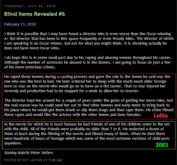 Enty cites Kubrick as being worse than (sick) Polanski. Iron Sellers a total degenerate child rapist too.