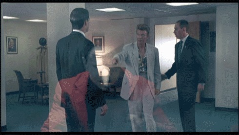 Jumping man's arm movement mimics that of Jeffries - black lodge spirits that have pulled Jeffries into this Philly scene.