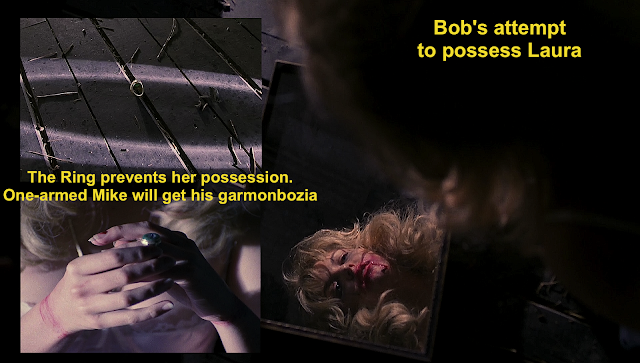 This is why 'Mike/one-armed man' throws 'the ring' into the train carriage moments before Laura's killing (at the hands of Bob/Leland - FWWM).