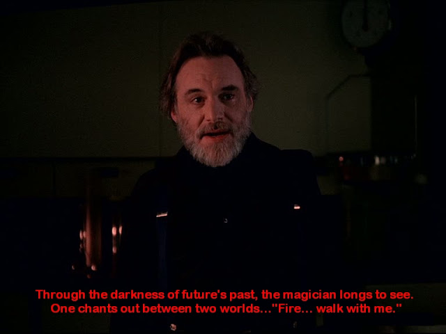 Thru the darkness of future past, the magician longs to see. One chants out between 2 worlds: Fire Walk With Me.