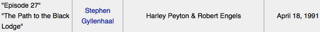 Lynch...Wild At (Oz) Heart and the red shoes/over the rainbow. Laura Dern, who will be in the 3rd series.
