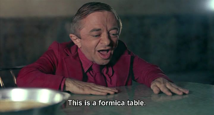 "This is a Formica table, green is its color" - said by MFAP (dwarf).