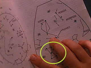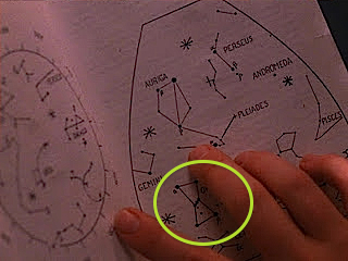 Inside the car of Bob possessed Cooper. Cronos/Cronus/Saturn (time/chronology) and the green ring (via electric lighter).