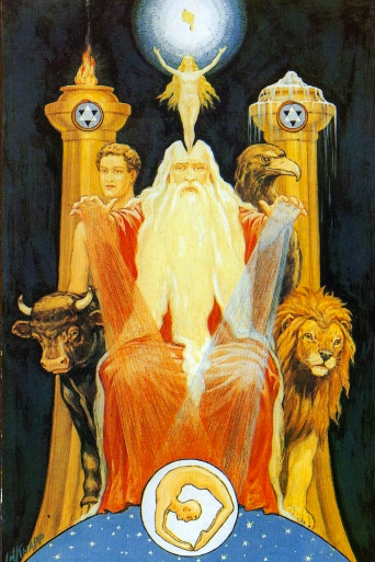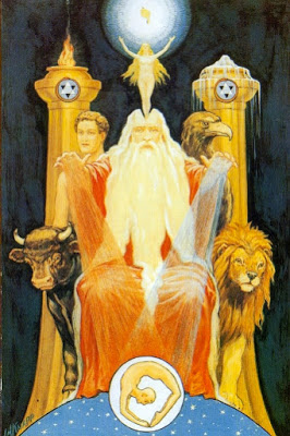 Also note the mention of the mythological "Griffin" (as part of his altar set-up) - a lion and eagle composite, these two creatures feature on one-side of the Ancient of Ancients (image).