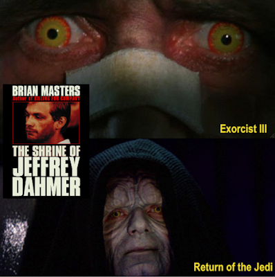 Dahmer's other main film interest was Return of the Jedi, that dumb kids film which is not much more than "Dungeons and Dragons" in space, but with poorer dialogue. Dahmer was particularly obsessed with The (evil) Emperor.