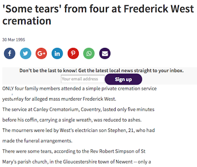 Is this "coded elite chatter' for what really happened with West? That either he was deliberately suicided, or that he was given the option of suiciding himself (see above). His cremation and the scattering of his ashes, seems extremely "symbolically charged" and "occult related" (via forms of mystical toponomy and history) - and that's even AFTER West's death and cremation! These aspects would've likely be organised and arranged by the (Satanic) UK state/elite!