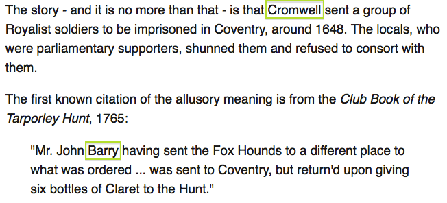 "Sent To COVEN-try" and (Oliver) Cromwell